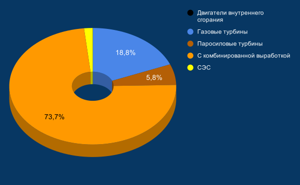 Структура установленной мощности генерирующих источников и доли генерирующих компаний приведены на нижеследующих диаграммах: