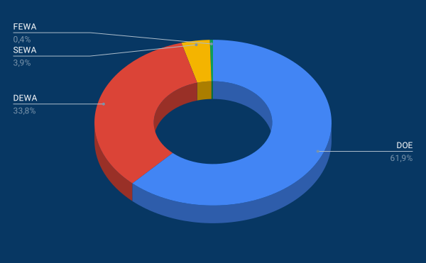 В соответствии с официальной национальной статистикой, основные показатели электроэнергетического комплекса ОАЭ за 2018 г. характеризуются следующими данными[4]: