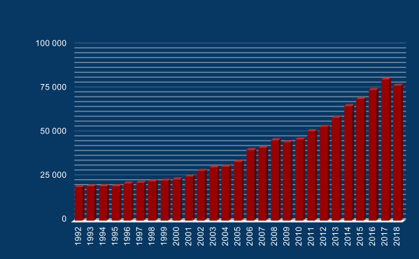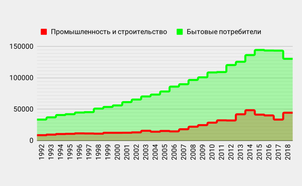 Если в 1992 году установленная мощность-нетто генерирующих источников - 19,3 ГВт, в 2018 году - 76,9 ГВт. Потреблении электроэнергии бытовыми потребителями в 1992 году - 33,5 млрд кВт∙ч, в 2018 году - 130,4 млрд кВт∙ч. Душевое (валовое) электроэнергии и душевое потребление электроэнергии населением в 2018 году в сравнении с 1992 годом возросло в 2,0 раза. Душевое потребление валового внутреннего продукта (по паритету покупательной способности) возросло в 2018 году в сравнении с 1992 годом почти в 1,3 раза.