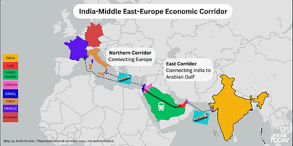 Меморандум о взаимопонимании в отношении экономического коридора Индия — Ближний Восток — Европа был подписан в сентябре 2023 года на полях саммита G20[4][7]. Свои подписи под документом поставили представители Индии, США, ОАЭ, Саудовской Аравии, Франции, Германии, Италии и ЕС[8]. Однако в октября 2023 года начало конфликта между Израилем и ХАМАС поставило под вопрос будущее проекта[9].