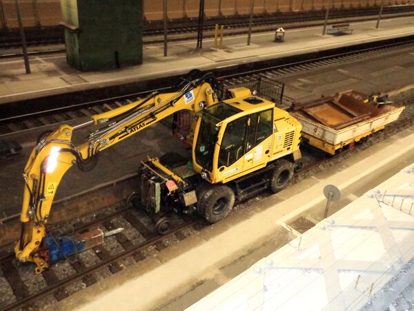 - на комбинированном шасси (например, пневмоколёсный с опускаемыми железнодорожными колёсными парами).