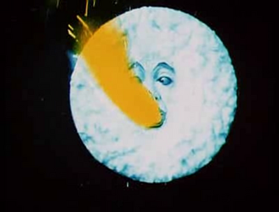 Ученый предлагает группе дворян слетать на Луну и демонстрирует им на грифельной доске расчеты такого полёта. Затем он переворачивает доску, и на ней появляется движущееся изображение, иллюстрирующее полёт снаряда с Земли на Луну. Участники переходят в мастерскую, где строится снаряд для полёта к Луне. Затем они осматривают гигантскую пушку для запуска этого снаряда. Они входят в снаряд, и группа военных загружает снаряд в пушку. После выстрела снаряд подлетает к Луне, которая, заметив его, открывает рот, и снаряд влетает прямо в него. Луна выдыхает пламя. Участники экспедиции укладываются спать на поверхности Луны. Начинается снегопад. Путешественники просыпаются, открывают зонтики и спускаются через пещеру под поверхность Луны, где восхищаются желтыми и зелеными огромными грибами и встречают селенитов, одетых как акробаты. Затем их приводят в зал правителя Луны, и они наблюдают танцы селениток. Один из землян оказывает знаки внимания танцовщице. Правитель Луны приходит в ярость. Селениты заталкивают путешественников в снаряд и сталкивают с края Луны. Коллеги на Земле наблюдают в подзорные трубы за снарядом, который падает рядом с ними. Из обломков снаряда выбираются путешественники и прилетевшая с ними селенитка.