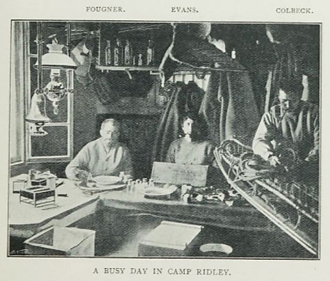 Зимовка в лагере Ридли проходила в относительно благоприятных условиях. Несмотря на суровую погоду, научные наблюдения шли непрерывно, обеспечивая занятость, и отвлекая от мрачных мыслей. Учёные занимались также фотосъёмками, главным фотографом считался Бернакки, хотя собственной камерой располагал также Эванс. Было решено не рисковать непроявленными негативами, поэтому эксперименты с выдержкой, составами проявочных растворов и печатью снимков требовали изобретательности и терпения, особенно при работе с желатиновой плёнкой. Бернакки экспериментировал и с кинокамерой. Однако главной проблемой была теснота, когда десять человек были заперты в своей хижине непогодой. Выход на воздух в штормовую погоду был отдельным испытанием: к магнитному павильону и метеостанции были протянуты канаты, к которым было необходимо привязываться, чтобы не потеряться во время метели. Психологическая обстановка осложнялась эмоциональностью Борхгревинка и его чувствительностью к любым посягательствам на его авторитет и властные полномочия. Вдобавок, он требовал уважения к своим научным навыкам, хотя не умел обращаться с оборудованием и корректно вести записи наблюдений. Однажды он недосмотрел за хронометрами, один из которых остановился. Бернакки настолько злил его дилетантизм, что в один прекрасный день физик заявил, что Борхгревинк не должен даже прикасаться к приборам и журналам наблюдений. Это усилило в командире подозрительность, он старался уловить малейшие признаки заговора против него. В день середины зимы (15 июля) командир попытался заставить команду подписать документ на норвежском языке, якобы, составленным Ньюнсом и его адвокатом, что неповиновение начальнику будет считаться мятежом и караться по британским законам 15-ю годами тюремного заключения. Вечером того же дня после скандала был уволен Колбек, который отныне считался «гостем» экспедиции и не допускался к научным работам. Бернакки сумел сдержаться и мягко разъяснил Борхгревинку, что глубоко оскорблён, поскольку на первое место ставил интересы науки, а не «дешёвую популярность». Норвежец тогда извинился, но с Колбеком они не разговаривали целую неделю, пока Карстен не вручил англичанину молитвенник с запиской, предлагающей помириться. Беседовали они на открытом воздухе и объявили, что увольнение аннулировано. Впрочем, Бернакки после этого стал именовать начальника в своём дневнике по-французски «Дитя» (фр. L'enfant)[66]. Позднее Бернакки жаловался, что зимовка проходила в праздности и «демократической анархии», в доме было грязно, а Борхгревинк не был достаточно авторитарным вождём, чтобы привести обстановку в порядок[67].