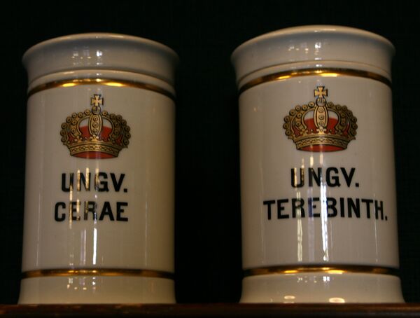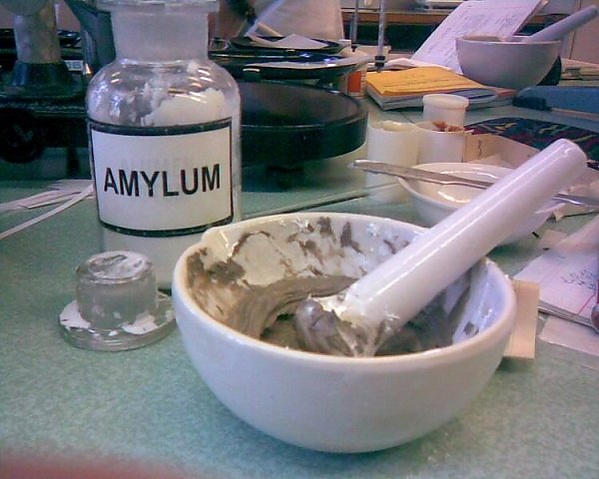 За столом в ассистентской обычно 5-6 рабочих мест. Одно место предназначено для приготовления жидких форм (микстур, растворов), второе — для приготовления и фасовки порошков, третье — для приготовления мазей и свечей. Некоторые места могут дублироваться. В центре стола стоят вертушки со штанглазами, особыми склянками с притертыми крышками, в которых хранятся порошки, мазевые основы и проч. лекарственные и вспомогательные вещества. Штанглазы расставляют на вертушках таким образом, чтобы они соответствовали тому месту рядом с которым они стоят. Так, например, штанглазы с мазевыми основами ставят рядом с тем местом, за которым изготавливают мягкие формы.
