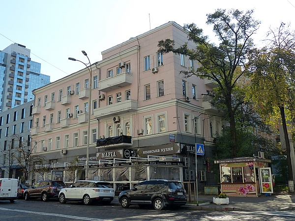 - 1905 (или 1906)—1920 — Жилой дом, ул. Гимназическая, 1 (ныне Богдана Хмельницкого, 27/1)[9]. Экстер проживала на втором этаже дома. Переехала на эту квартиру к своему мужу Николаю Экстеру, отец которого был владельцем дома, гласным городской думы, школьным учителем гимнастики. В 1918—1919 гг. в доме размещалась её мастерская живописи, где работали художники: Вадим Меллер, Анатолий Петрицкий, Александр Тышлер, Любовь и Григорий Козинцевы, Сергей Юткевич; бывали писатели Илья Эренбург, Бенедикт Лифшиц, Осип Мандельштам, Виктор Шкловский[10].