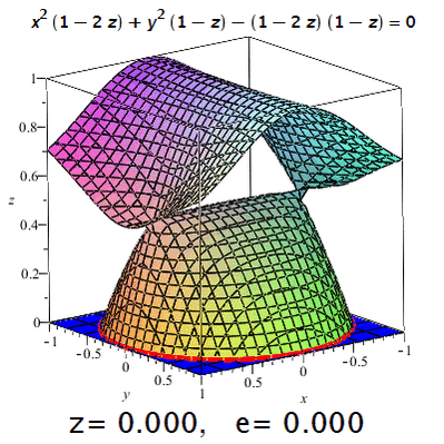 Это число называется эксцентриситетом конического сечения. Эксцентриситет окружности по определению равен 0.