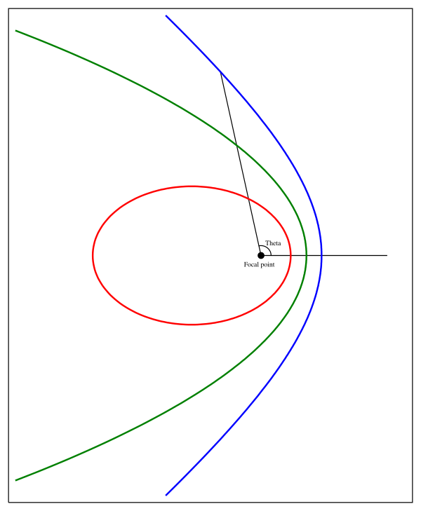 Для гиперболических орбит эксцентриситет вычисляется по формуле: