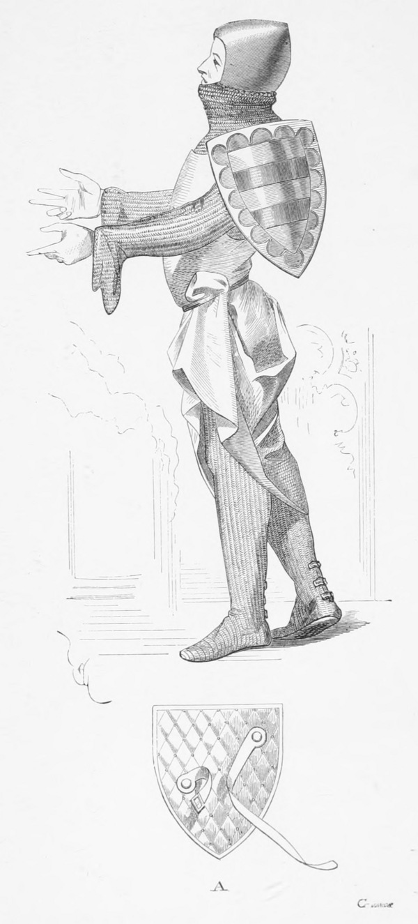 - Нижний конец щита становится широким, в результате он теряет треугольную форму и приобретает скорее трапециевидную. Этот нижний конец по-прежнему выгнут наружу, тогда как в отношении верхнего края это не заметно. Умбон сохраняется (1430—1450).