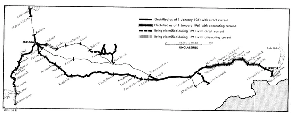 Первые электропоезда ЭР7 и ЭР9 начали работу только в 1962 году. Для Красноярской железной дороги в 1959 году были приобретены французские электровозы типа Ф, так как производство советских электровозов переменного тока (ВЛ60 и ВЛ80) задерживалось.