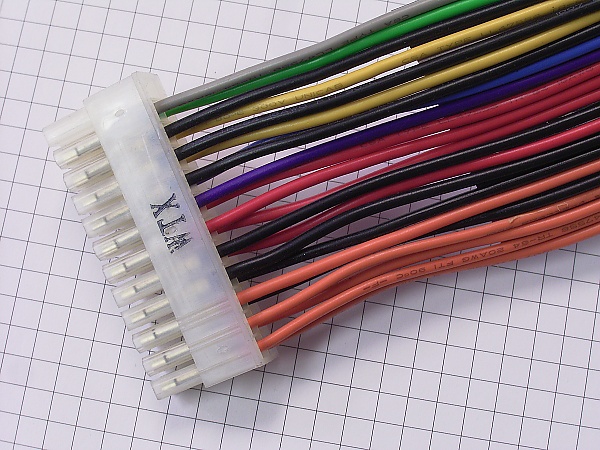 В разъёме использована вилка типа MOLEХ 24 Pin Molex Mini-Fit Jr. PN# 39-01-2240 (или эквивалентная) на стороне БП с контактами типа Molex 44476-1112 (HCS) (или эквивалентная); розетка ответной части на материнской плате типа Molex 44206-0007 (или эквивалентными).