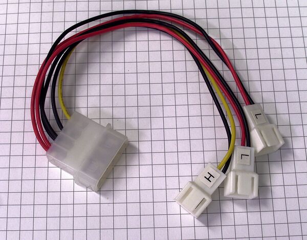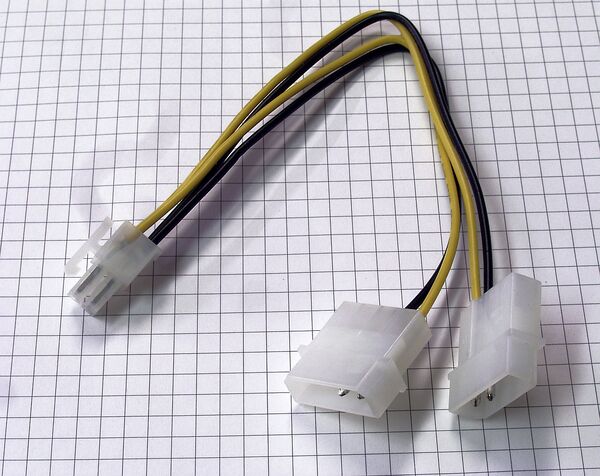 В разъёме использована вилка типа MOLEХ 8981-04P (или эквивалентная) с контактами AMP 61314-1 (или эквивалентными). Провод толщиной 18 AWG имеет цветную изоляцию трёх цветов (жёлтый — +12 вольт, красный — +5 вольт, чёрный — земля).