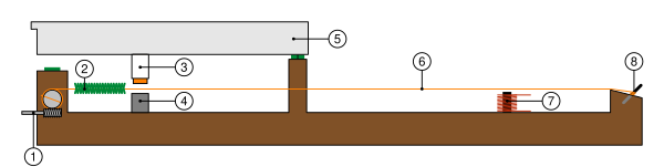 «Clavinet» компании Хонер[8] — фактически является электрическим клавикордом. Резиновая площадка под каждой клавишей прижимала струну к металлической наковальне, что заставляло свободную часть прижатой струны вибрировать. При отпускании клавиши вся струна, теоретически, может вибрировать, но она немедленно демпфируется намотанной на струну со стороны колков пряжей. Два электромагнитных однокатушечных звукоснимателя, расположенных над и под струнами, осуществляют съём звука, который предварительно усиливается и фильтруется перед подачей на вход гитарного усилителя.