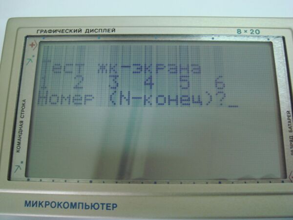 Экран жидкокристаллический ИЖГ80-120х64 производства завода «Интеграл»[6]. Система команд совместима с микроЭВМ «Электроника-60»