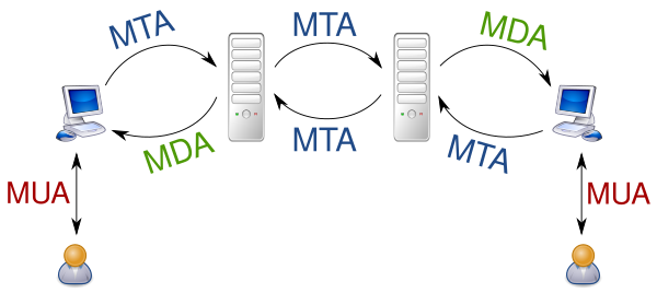 - MDA (англ. mail delivery agent — агент доставки почты) — отвечает за доставку почты конечному пользователю.