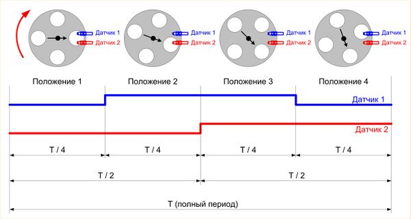 Как правило, в качестве датчика применяется механический прерыватель или индуктивный датчик (бесконтактный датчик) или энкодер.