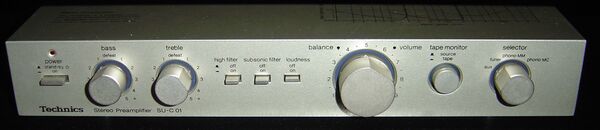 - Предварительный усилитель (предусилитель) — усилитель, предназначенный для усиления сигнала до величины, необходимой для нормальной работы оконечного усилителя.