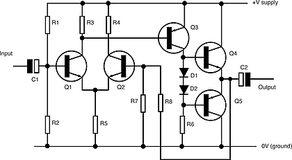 Усилитель представляет собой в общем случае последовательность каскадов усиления (бывают и однокаскадные усилители), соединённых между собой прямыми связями.