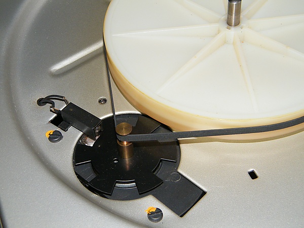 Электродвигатель обязательно закрепляется на основании ЭПУ через амортизирующие устройства для снижения передачи вибраций на тонарм и головку звукоснимателя (смотри Микрофонный эффект).