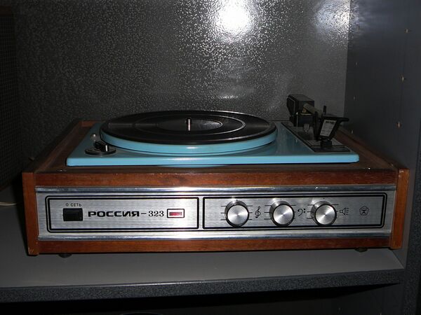 В 1957 г. был выпущен первый советский электрофон, пригодный для воспроизведения объёмного звука — «Юбилейный-Стерео». Это было высококачественное устройство, имевшее уже три скорости вращения (была добавлена скорость 45 об./мин. — стандартная в США), встроенный усилитель на семи лампах и две выносные акустические системы. Но и стоимость «Юбилейного» по тем временам была очень высока — 1200 рублей (до денежной реформы 1961 года) при средней зарплате в стране в то время около 700 рублей[8].