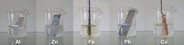 - Металлы, стоящие в ряду правее водорода, с водными растворами кислот-неокислителей при обычных условиях не взаимодействуют.