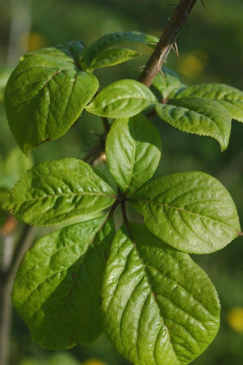 Кустарник высотой от 2—2,5 до 4—5 м с многочисленными (более 25) стволиками. Побеги прямые, со светло-серой корой, густо усажены многочисленными тонкими шипами, направленными косо и вниз. Сильно разветвлённое цилиндрическое корневище с большим количеством придаточных корней расположено в верхних слоях почвы (длина корневой системы достигает 30 м).