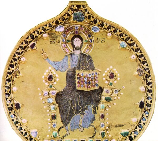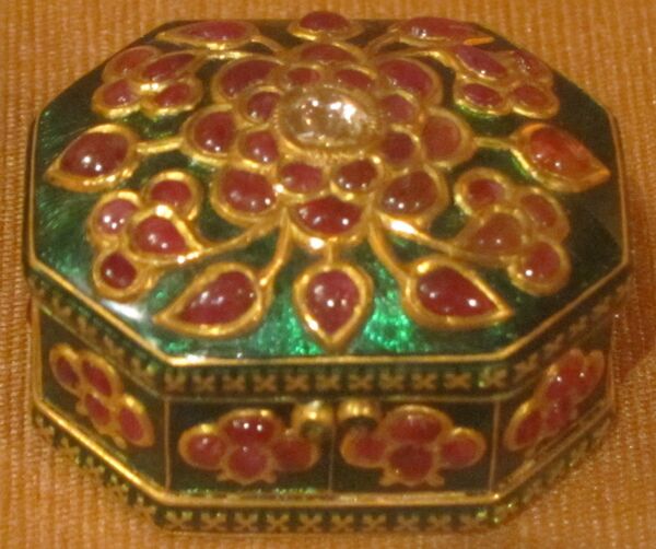 После этого эмаль шлифуется и окончательно отполировывается таким образом, чтобы эмаль и верх перегородок находились в одной плоскости. Полное, без углублений, заполнение эмалью ячеек и является отличительным признаком перегородчатых эмалей. Полученное разноцветное изображение из эмали напоминает инкрустацию драгоценными камнями.
