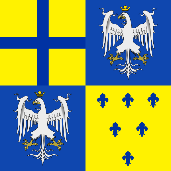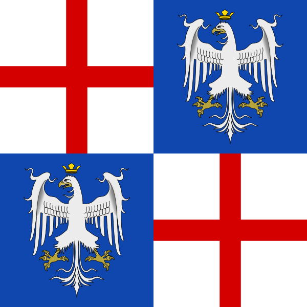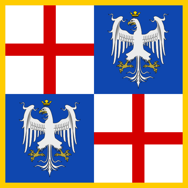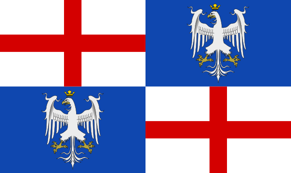 В начале 2000-х годов журнал Quaderni Padani (ит.) представил разделённый на четверти флаг с георгиевским крестом на серебряном поле в первой и четвертой четвертях, и с орлом герба семейства Эсте на лазурном поле во второй и третьей четвертях. По замыслу сторонников крест должен олицетворять преданность святого Георгия, покровителя Феррары, и присоединение к Ломбардской лиге (которая часто использовала это знамя и орла гвельфов) некоторых эмилианских муниципалитетов и Боббио; красный крест на серебряном поле показал бы гербы Болоньи и Реджо-Эмилии, флаг Пармы в битвах против Священной Римской империи, цвета герба Пьяченцы и герба семейства Гонзаги, поскольку одна из его ветвей управляла герцогством Гвасталла; орел Эсте олицетворяет территории, которыми управляло семейство Эсте (Феррара, Модена, Реджио, эмилианский Полезине (ит.), Фриньяно (ит.), Гарфаньяна, Луниджана и Каррара).[36]