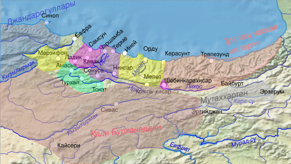 Владения Таджеддина простирались до Лимнии (устье реки Ирис) и Инея. Туркмены Таджеддина вели традиционный кочевой образ жизни, перегоняя стада летом на пастбища в горы, а зимой спускаясь в дельту Ириса[4]. Между 1351 и 1369 годами император Трапезунда Алексей III был вынужден часто посещать Лимний, пытаясь защитить эти земли от Таджеддина[5]. В 1362 году Таджеддин посватался к дочери Алексея III. По словам Р. Шукурова это произошло на фоне ухудшавшихся отношений с Кади Бурханеддином. Однако в Анатолию из Дамаска Бурханеддин вернулся лишь в 1364 году[6]. В 1362 году Таджеддин получил отказ, поскольку Алексей не хотел портить отношений со своим соседом и зятем Хаджи Амиром Ибрагимом, который враждовал с Таджеддином из-за пограничных территорий[7].