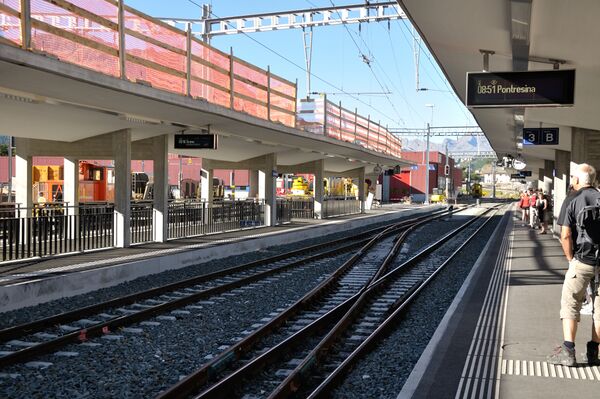 Пересадочная станция с Бернинской железной дорогой. Из-за разных систем электрификации на линиях станция двусистемная. Энгадинская линия использует пути с 1 по 3, в то время как Бернина — с 3 до 7. На пути 3 происходит смена локомотивов для знаменитого Бернина экспресс, который работает между Куром или Давос-плац и Тирано.