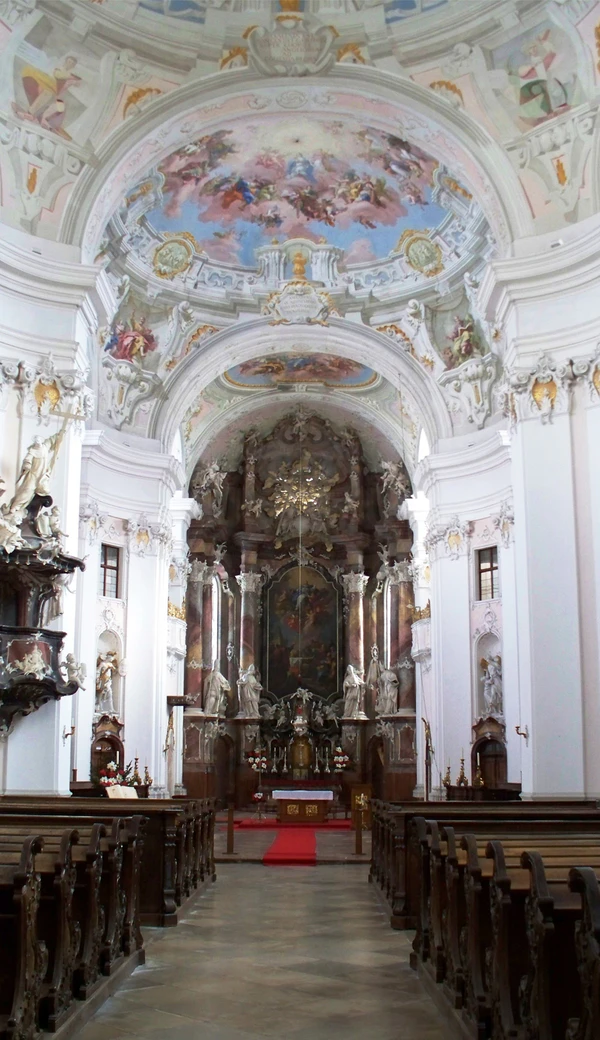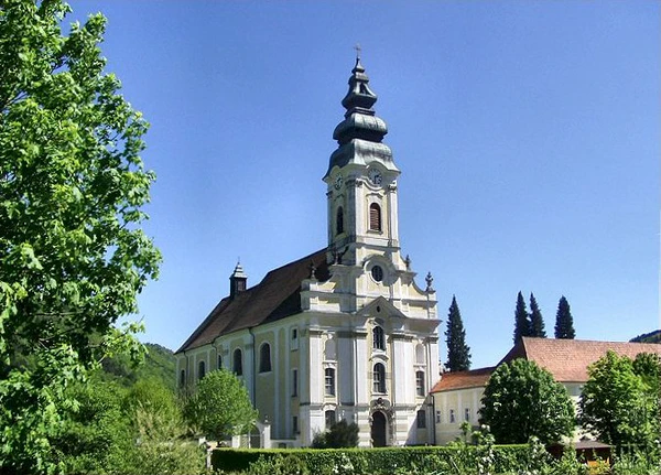 Церковь аббатства Энгельсцелль, построенная между 1754 и 1764 годами, представляет собой впечатляющий храм в стиле рококо с колокольней высотой 76 метров. Интерьер украшен работами Бартоломео Альтомонте, Йозефа Дойчманна и Иоганна Георга Ублхёра. После повреждений примерно в 1957 году верхний свод нефа был расписан современной работой Фрица Фрёлиха.
