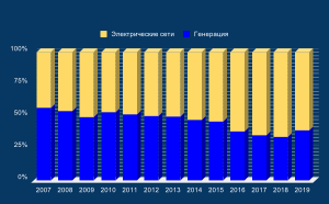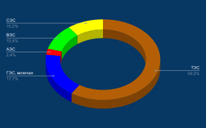 Установленная мощность-брутто электростанций на конец 2019 года — 2,01 ТВт, производство электроэнергии-брутто за 2019 г. — 7,32 трлн кВт∙ч (предварительно)[6] .