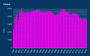 В конце 2010-х стремление правительства снизить вред от угольной энергетики, которая покрывала 60 % потребностей Китая, привело к закрытию нескольких электростанций и ограничению работы ключевых предприятий (по указу властей компании вынуждены полностью приостанавливать производство на несколько дней в неделю, чтобы экономить электроэнергию).