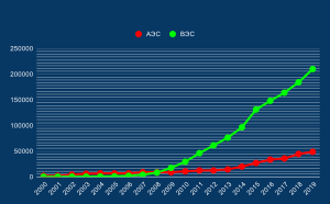 Динамика развития солнечной и ветряной энергетики приведена в нижеследующих диаграммах[6]