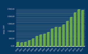 Только за период с 2007 по 2017 годы фактические капиталовложения в электроэнергетический комплекс составили[6] около 7,6 трлн CNY (или 42,7 % от суммарных инвестиций в производство электрической энергии и тепла), в том числе: 3,6 трлн CNY — генерация и 4,0 трлн CNY — электрические сети