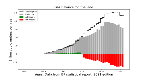 Природный газ занимает около 60 % топлива, необходимого для генерации электрической энергии в Таиланде[6].