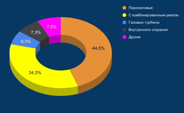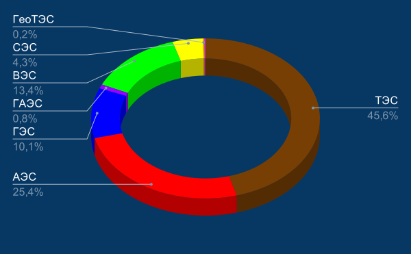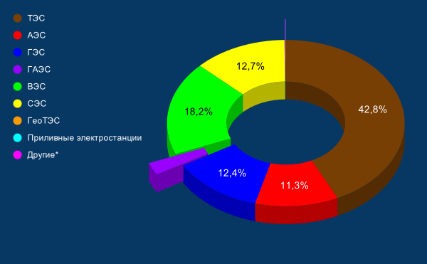 | ТЭС | АЭС | ГЭС | ГАЭС | ВЭС | СЭС | ГеоТЭС | Приливные электростанции | Другие | ||||