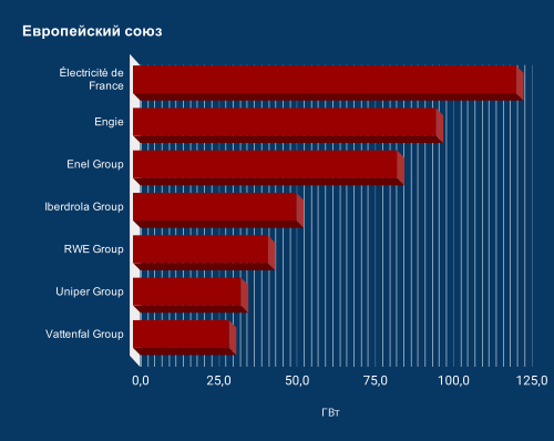 Крупные (30 ГВт и выше) генерирующие компании Европейского союза — ключевые субъекты электроэнергетики (диаграмма):