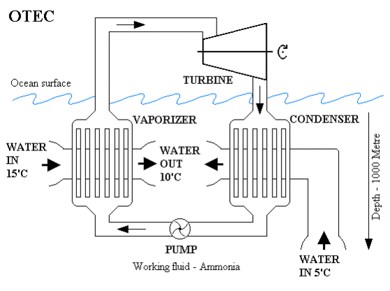 Основной задачей устройств, основанных на энергии температурного градиента морской воды, является получение человечеством необъятной солнечной энергии, аккумулируемой мировым океаном. Расчеты показывают, что за счет вертикальной разности температур тропического океана, вовлекая в процесс преобразования 5 % энергии от солнечного излучения на площади 4х10^13м². можно стабильно обеспечить генерирующие мощности на 10 000ГВт.