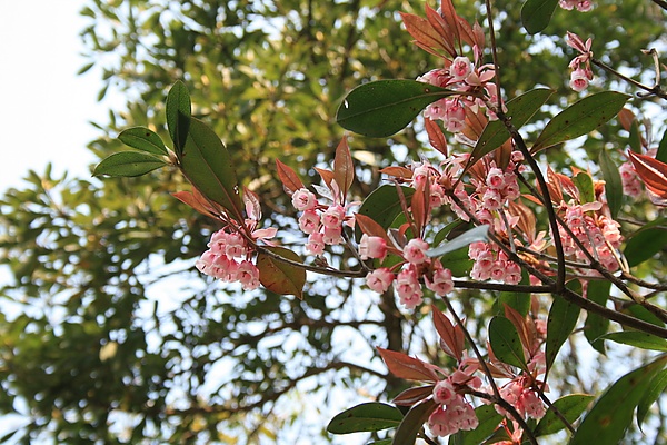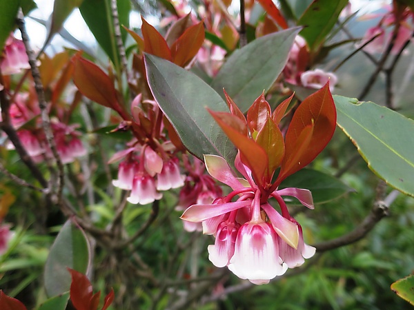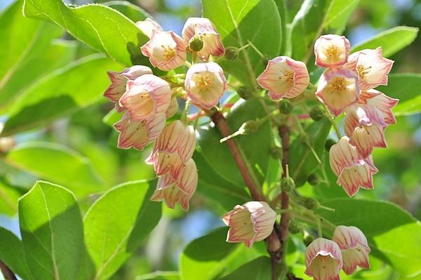 - Enkianthus quinqueflorus Lour.typus[30] — произрастает в восточном, центральном, южном и юго-западном Китае, а также во Вьетнаме[31]. Характерны розовые, красные или белые цветки с колокольчатым венчиком, собранные в зонтиковидные соцветия (от 3 до 8 в каждом)[32].