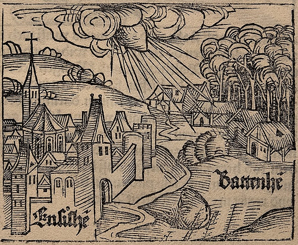 16 ноября 1492 года раздался взрыв, который был слышен на территории Эльзаса и на части территории Швейцарии. Один мальчик видел, как большой камень упал с неба на пшеничное поле, что расположено неподалёку от Энсисхейма в Эльзасе. Это было падение метеорита[2][3].