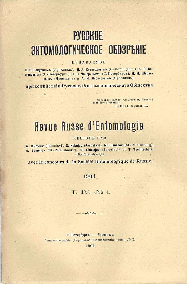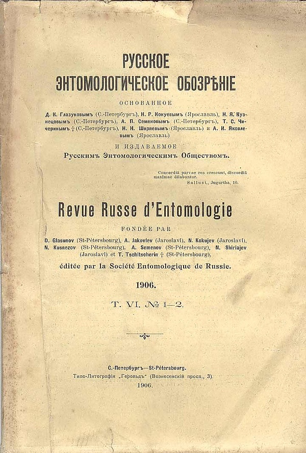 С 1906 года становится печатным органом Русского энтомологического общества и начинает издаваться в Санкт-Петербурге. С 1918 по 1921 год приостанавливал свою деятельность[1][4].