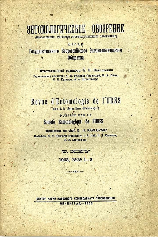 С 1933 года журнал выходит под названием «Энтомологическое обозрение» (как продолжение «Русского энтомологического обозрения») и издаётся сектором науки Народного комиссариата просвещения[1][4].