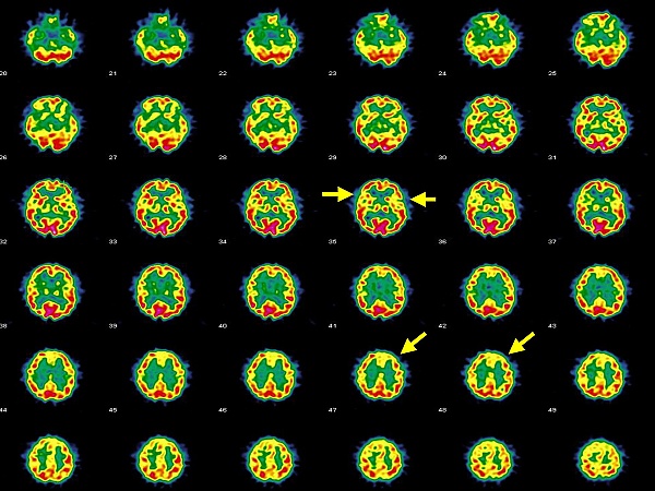Патологические изменения при магнитно-резонансной томографии включают ишемические поражения, демиелинизацию, отёк, атрофию, а также патологические сигналы в гиппокампе или височной доле[1].