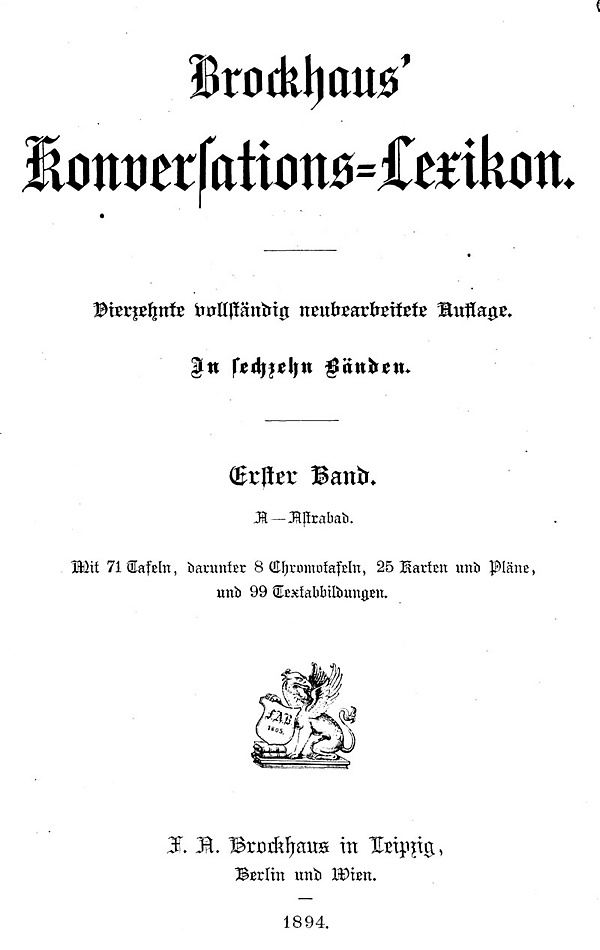 | 14[23] | Brockhaus Konversations-Lexikon | Лейпциг | 1920 | 17 | — | — | ||