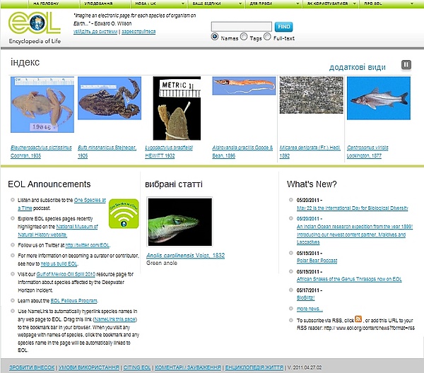 - eol.org (англ.) — официальный сайт Энциклопедия жизни
