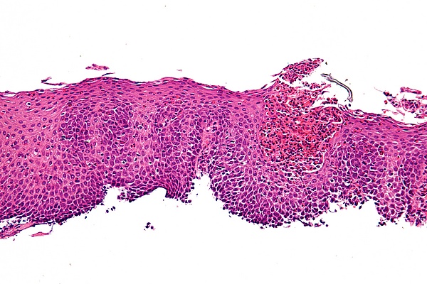 - Гистологическое исследование биоптата пишевода: является золотым стандартом для диагностики ЭЭ. При исследовании ткани под микроскопом можно обнаружить преобладание эозинофилов в слизистой оболочке (более 15 эозинофилов на поле зрения), другие воспалительные клетки, такие как нейтрофилы, могут также быть обнаружены[3][4].