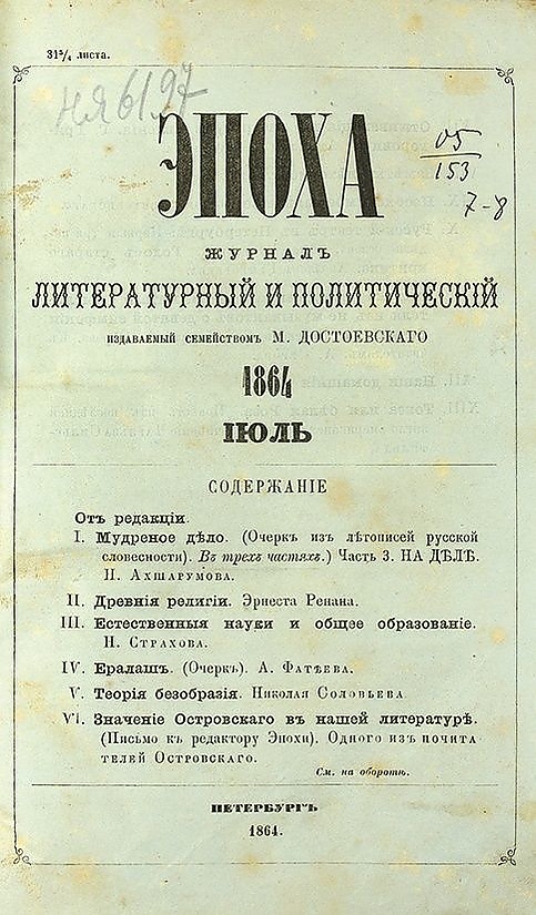 - Эпоха (публицистика). Федор Михайлович Достоевский. Антология жизни и творчества. Дата обращения: 7 мая 2016.