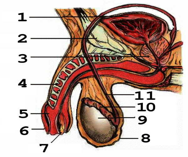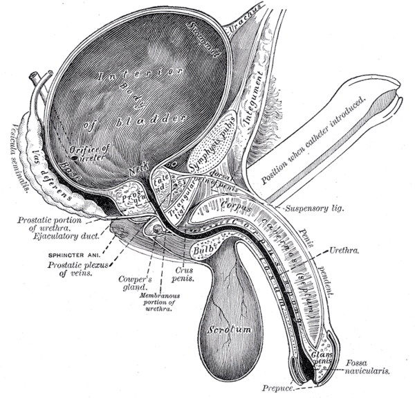 Половой член — один из наружных органов мочеполовой системы, то есть принадлежащий одновременно мочевыделительной и репродуктивной системам. Служит для выведения мочи, соития и семяизвержения. Во время эрекции пещеристые и губчатые тела наполняются кровью. Кровоснабжение полового члена осуществляется через глубокую и дорсальную артерии полового члена, которые являются ветвями внутренней половой артерии[52]. Чувствительным нервом является дорсальный нерв полового члена (ветвь срамного нерва). Симпатические нервы идут из нижних подчревных сплетений, а парасимпатические — из тазовых внутренностных нервов. В эрекции участвуют луковично-губчатая мышца, которая охватывает луковицу и заднюю часть губчатого тела, и седалищно-пещеристая мышца, которая при сокращении прижимает корень пещеристого тела к кости, выпрямляет половой член, пережимает его тыльные вены[52]. В спокойном состоянии гладкие мышцы пениса позволяют лишь небольшой артериальный кровоток. Мышцы расслабленного пениса находятся в умеренном состоянии сокращения, о чём свидетельствует их сокращение в холоде или при использовании определённых медицинских препаратов[30].