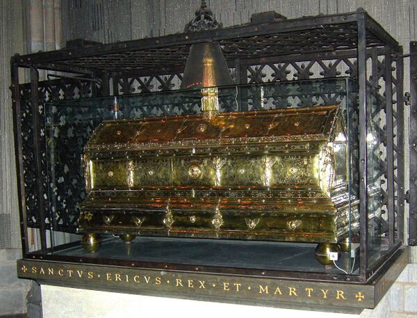 В целях упрочнения своих политических позиций сын Эрика, Кнуд Эрикссон, поощряет поклонение своему отцу как мученику. Факты и вымысел о его жизни были неразделимо слиты вместе. Перенесение его мощей усилило глубину религиозного чувства простого народа. На празднике, посвященном этому королю, происходили процессии из собора в Старую Уппсалу, с прошением хорошего урожая.
