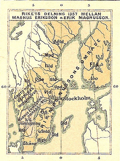 Все эти события подвигли Эрика на восстание против своего отца, оно началось в 1355 году (или в октябре 1356 года). Эрика поддерживали феодалы Финляндии и южной Швеции (область Сконе). В апреле 1357 года между Магнусом и Эриком было заключено соглашение в Йончёпинге, по которому они оба признавались королями и Швеция делилась на две части, под властью Эрика оказалось Сконе, почти вся восточная часть Швеции и Финляндия. В январе 1359 года, из-за угрозы со стороны датского короля Вальдемара Аттердага, желавшего захватить Сконе и Готланд, соглашение было пересмотрено. Теперь Магнус и Эрик были провозглашены королями-соправителями единой Швеции.